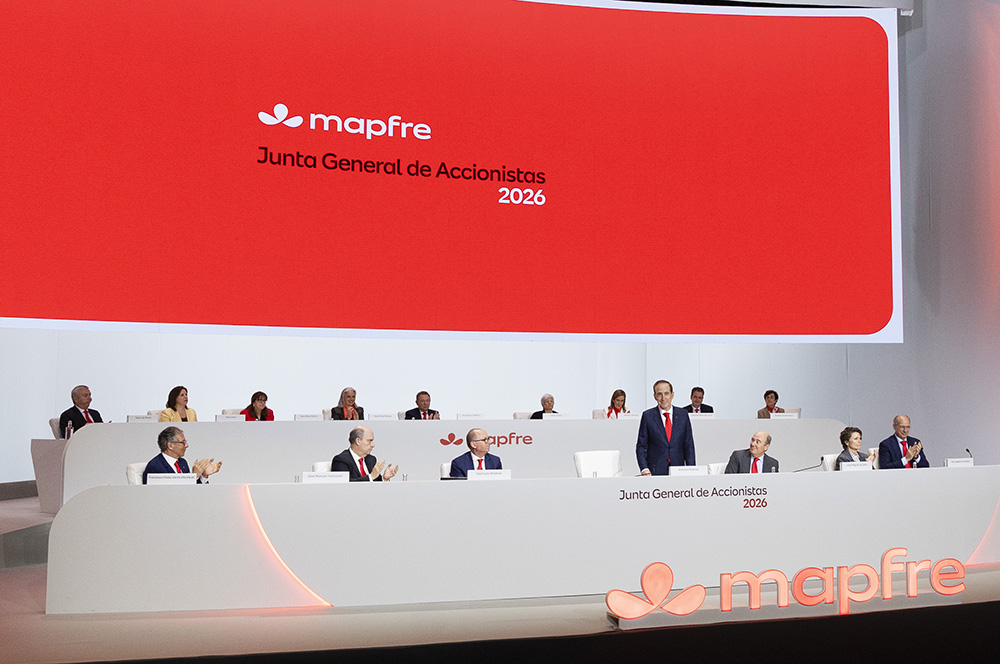 La Junta General de Accionistas de Mapfre ha aprobado las cuentas correspondientes al ejercicio 2025, un año histórico para la compañía en el que el Grupo alcanzó por primera vez un beneficio neto superior a los 1.000 millones de euros y un beneficio bruto por encima de los 2.400 millones. Este desempeño excepcional, según destacó el presidente de Mapfre, Antonio Huertas, refleja “la fortaleza de nuestro modelo de negocio, la estricta disciplina técnica que estamos aplicando en todos los mercados y la solidez que nos aporta nuestra diversificación geográfica y de productos”. La Junta aprobó el mayor dividendo de la historia del Grupo, que alcanza los 0,18 euros brutos por acción con cargo a los resultados de 2025, de los que 0,07 euros ya se abonaron en noviembre y los 0,11 euros restantes se pagarán el próximo mes de mayo. En total, Mapfre distribuirá 554 millones de euros íntegramente en efectivo entre sus más de 150.000 accionistas. Huertas subrayó que esta retribución, que supera el 51% del payout, “es coherente con el compromiso firme de la compañía con sus accionistas y con su capacidad de generar caja de forma constante”. La alta participación pone de manifiesto el acierto de la política de involucración de los accionistas aprobada por el Consejo de Administración y de las acciones implementadas en cumplimiento de esta. En su intervención, Antonio Huertas se refirió al conflicto bélico de Oriente Medio como la mayor incertidumbre a la que se enfrentan las economías mundiales: “Tenemos una gran confianza en nuestra capacidad de resiliencia frente a tensiones extremas pero la evolución de la inflación, de los tipos de interés y de la disponibilidad suficiente de oferta de energía y materias primas marcarán el pulso económico del año, y esto dependerá de la duración e intensidad del conflicto en Oriente Medio”. Es en este contexto cuando anunció la actualización de los objetivos financieros para el último año de vigencia del Plan Estratégico 2024-2026. Mapfre prevé para 2026 superar un ROE del 13% y situar su objetivo de Ratio Combinado en un rango de entre el 93% y el 94%, aumentando así la exigencia respecto a las metas iniciales planteadas, aunque admitiendo que ambas variables estarán condicionadas por la evolución de la inflación, que de elevarse sustancialmente, obligaría a moderar las previsiones. El resto de compromisos financieros, estratégicos y de sostenibilidad se mantienen plenamente vigentes. “Reforzamos hoy nuestros compromisos desde el rigor y la solidez de nuestro plan estratégico, que sigue guiando nuestros pasos, pero siendo conscientes también de la responsabilidad y la prudencia que exige avanzar en un mundo inmerso en una gran incertidumbre y volatilidad”, afirmó Huertas. La compañía destacó además importantes avances en su proceso de transformación y modernización. Entre ellos, el lanzamiento de su nueva identidad de marca global, que refleja la profunda evolución de la compañía durante la última década y proyecta una imagen más ágil, tecnológica y humana. Mapfre reforzó también su transformación digital mediante el despliegue acelerado de la plataforma tecnológica REEF, ya operativa total o parcialmente en varios países de Latinoamérica y en áreas estratégicas de España, y a través del crecimiento del Centro de Inteligencia Artificial, que en 2025 desarrolló más de 150 casos de uso, una tercera parte de ellos basados en IA generativa. A ello se suma el impulso de la plataforma de datos Atenea, la mejora en la calidad del dato en 28 países y el crecimiento del negocio digital, que experimentó un avance del 14,6% interanual. En paralelo, Mapfre ha reforzado su posicionamiento como referente en planificación financiera, un ámbito estratégico para el futuro del Grupo. Durante 2025, la compañía impulsó de manera notable su propuesta basada en las tres “P” —Protección, Previsión y Patrimonio—, consolidando un crecimiento muy significativo en Vida- ahorro e inversión. Así, solo en IBERIA, el negocio captado de ahorro-inversión el pasado año se elevó a 3.200 millones. Esta evolución, unida al desarrollo de redes de mediadores expertos y al acuerdo con socios como Abante, consolida una oferta integral capaz de acompañar a los clientes en todas las etapas de su ciclo financiero. La compañía mejora en sus objetivos de contar con la plantilla más preparada para los cambios que vienen, a través de su Universidad Corporativa, haciendo posible a su vez un mejor alineamiento desde el punto de vista de la diversidad y de la igualdad de oportunidades. Así, se ha alcanzado un 4,2% de personas con discapacidad entre los empleados, y se ha superado el 35% de mujeres en puestos directivos. Mapfre avanzó también de forma significativa en materia de sostenibilidad. En 2025, la compañía cumplió el 100% de sus compromisos del Plan de Sostenibilidad 2024-2026, redujo un 24% su huella de carbono operativa, alcanzó un 93% de inversiones calificadas con criterios ESG y consolidó su compromiso social con un récord de más de 10.600 voluntarios que han participado en cerca de 2.500 actividades en 26 países, tal y como refleja el informe Hechos para el Compromiso 2025. Además, impulsó la inclusión financiera a través del ecosistema de microseguros “A tu lado Mapfre”, ya desplegado en Brasil y Colombia, cuyo objetivo es facilitar el acceso a la protección aseguradora a segmentos de población de menores ingresos. La Junta aprobó también la reelección como consejeros de Antonio Huertas, Pilar Perales y Ángeles Santamaría.